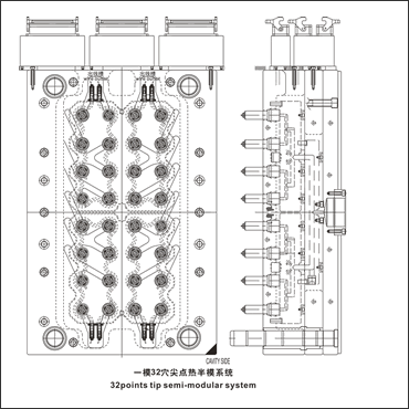 Heat semi-mold is also named as hot runner speedy system. HOTTIP heat semi-mold is that HOTTIP shoulders the hot runner, and the customer himself shoulders the mold process.